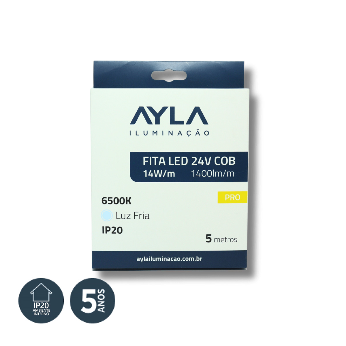 Fita LED 24V 6500K 14W/m RL5MT (COB) proporciona iluminação intensa e uniforme, ideal para projetos internos que exigem luz fria de alta performance e baixo consumo de energia.